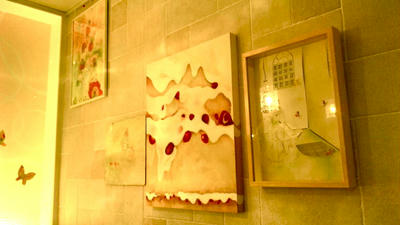 今、大阪千里中央の箕面市にあるお洒落なスイーツカフェHeartfulさんにて、展示をしています。春といえば いちご の季節ですね!!私の得意な いちご のイラストやケーキが食べたくなるような作品をお店いっぱいに飾らせていただいています*。