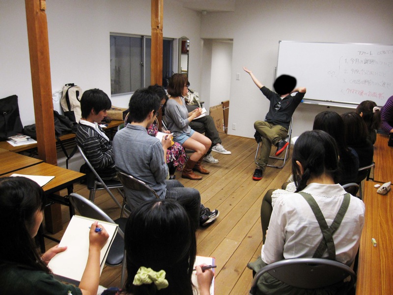 なんばにある画材屋さんの会議スペースを借りて、予算やらグループ展の企画やらワイワイしながらしゃべっとったです。この日のためだけに作成されたレジュメを見ながら、みなさんしっかり話を聞いていましたね。
