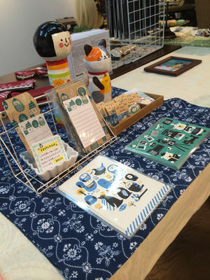 かわいいこけしが目印!出展作品のポストカードや、ミニレターセット、缶バッジなど!