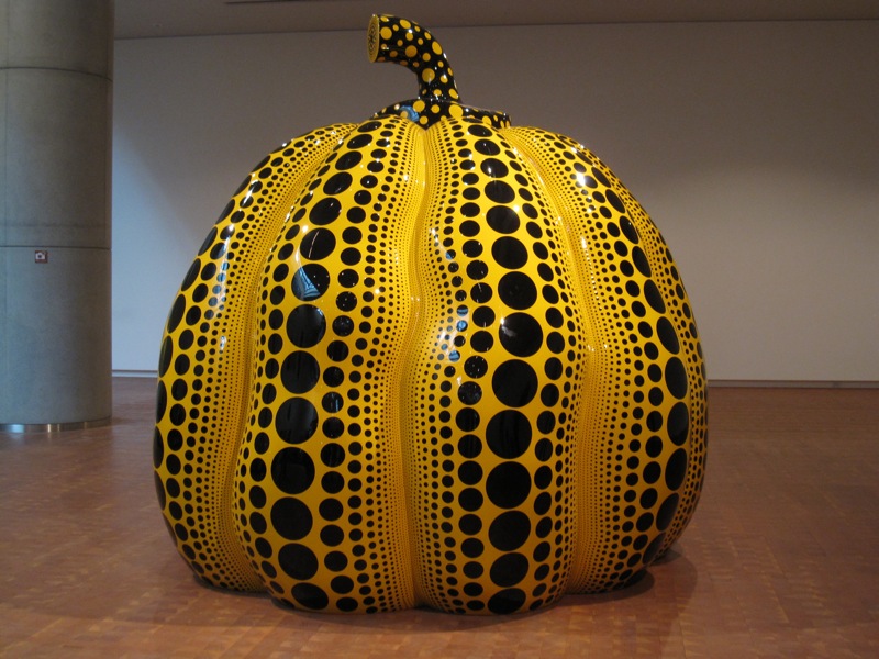 作品は、「愛はとこしえ」「わが永遠の魂」「新作ポートレート」「幸福の彫刻たち」の4つから構成されていて、一つ一つの作品が予想以上に大きかったので驚き。直島でも見られる超有名なカボチャのオブジェも、ドンと居座っております。