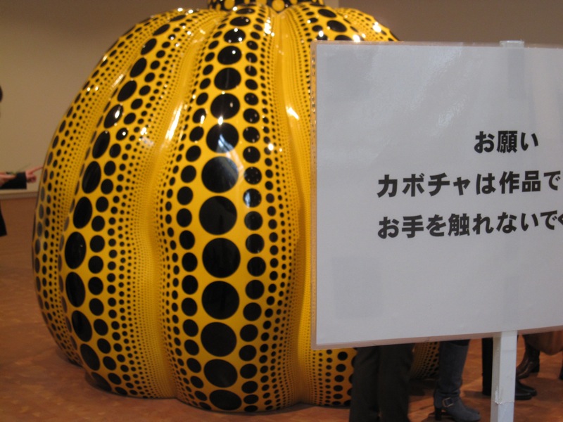 作品は、「愛はとこしえ」「わが永遠の魂」「新作ポートレート」「幸福の彫刻たち」の4つから構成されていて、一つ一つの作品が予想以上に大きかったので驚き。直島でも見られる超有名なカボチャのオブジェも、ドンと居座っております。