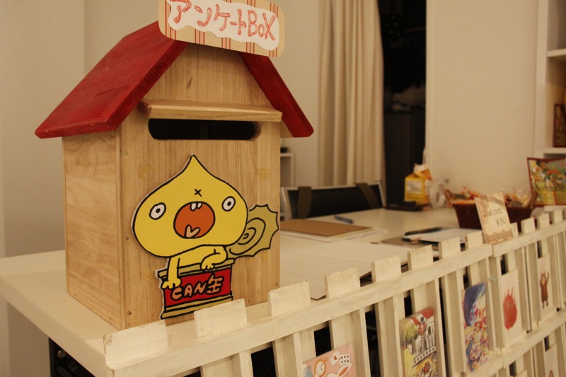 マスコットキャラクターCAN坊もお出迎え。こちらでは物販もしています。