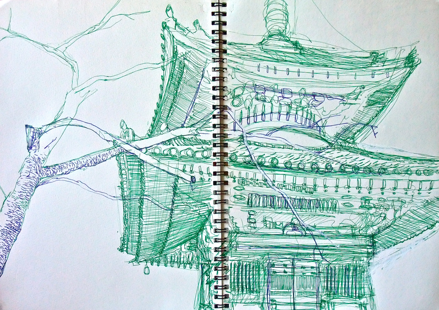 ここで重要文化財に指定されている多宝塔をスケッチして