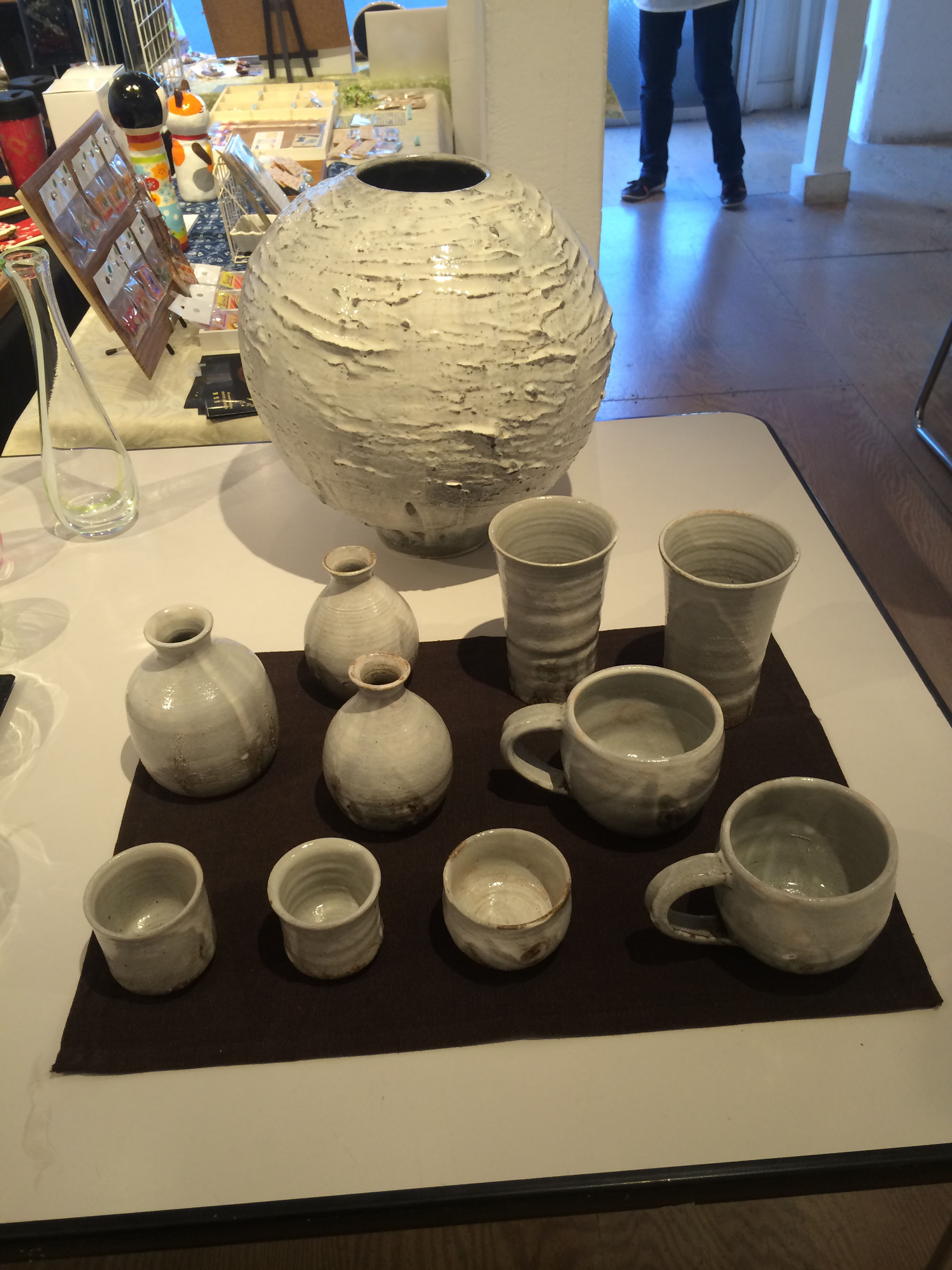 大きい壷は展示作品で非売品となりますが、手前の食器は、なんと全て700円!!