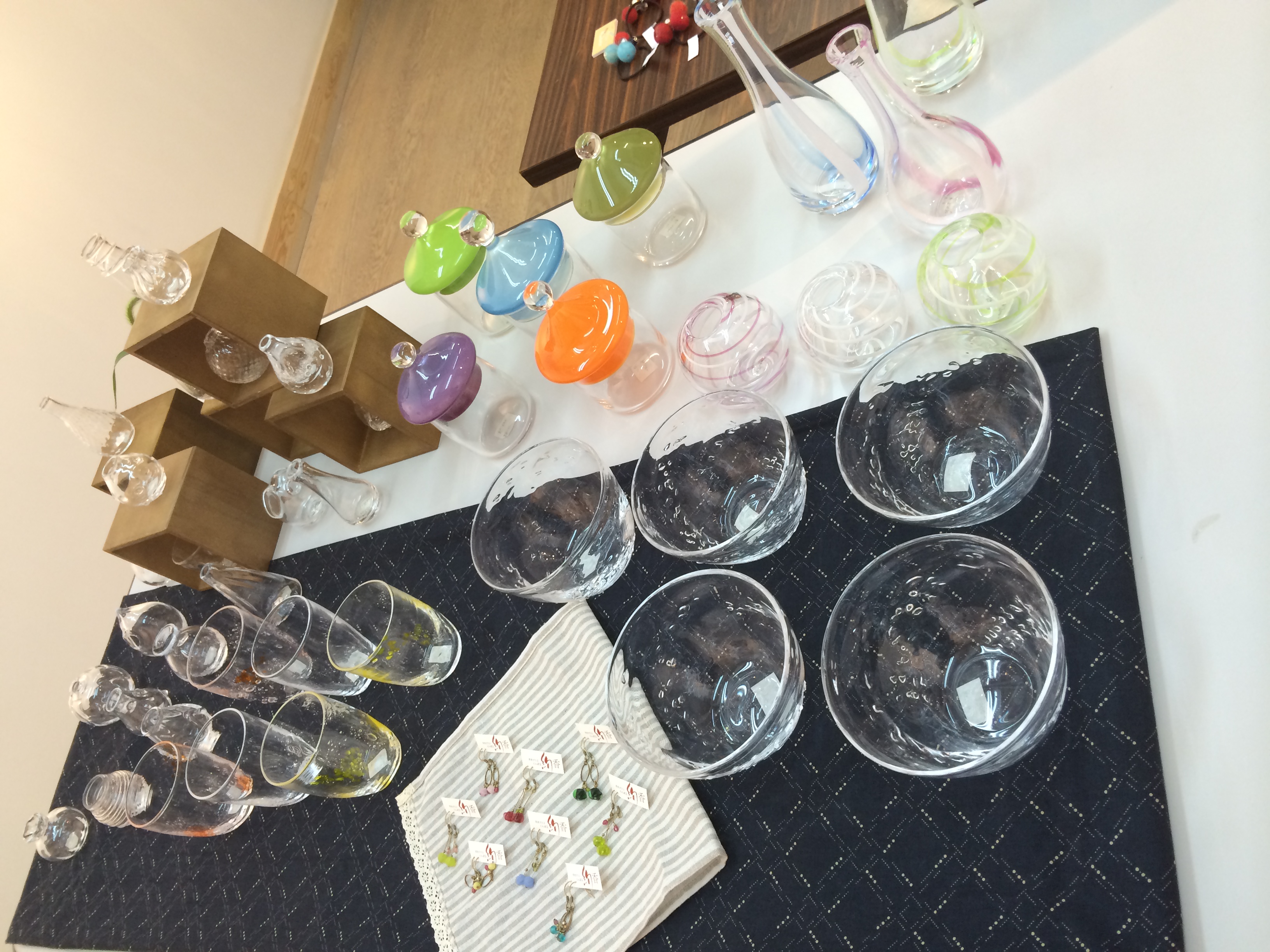 大きいサイズの花器、グラスボウル、ピアスです!